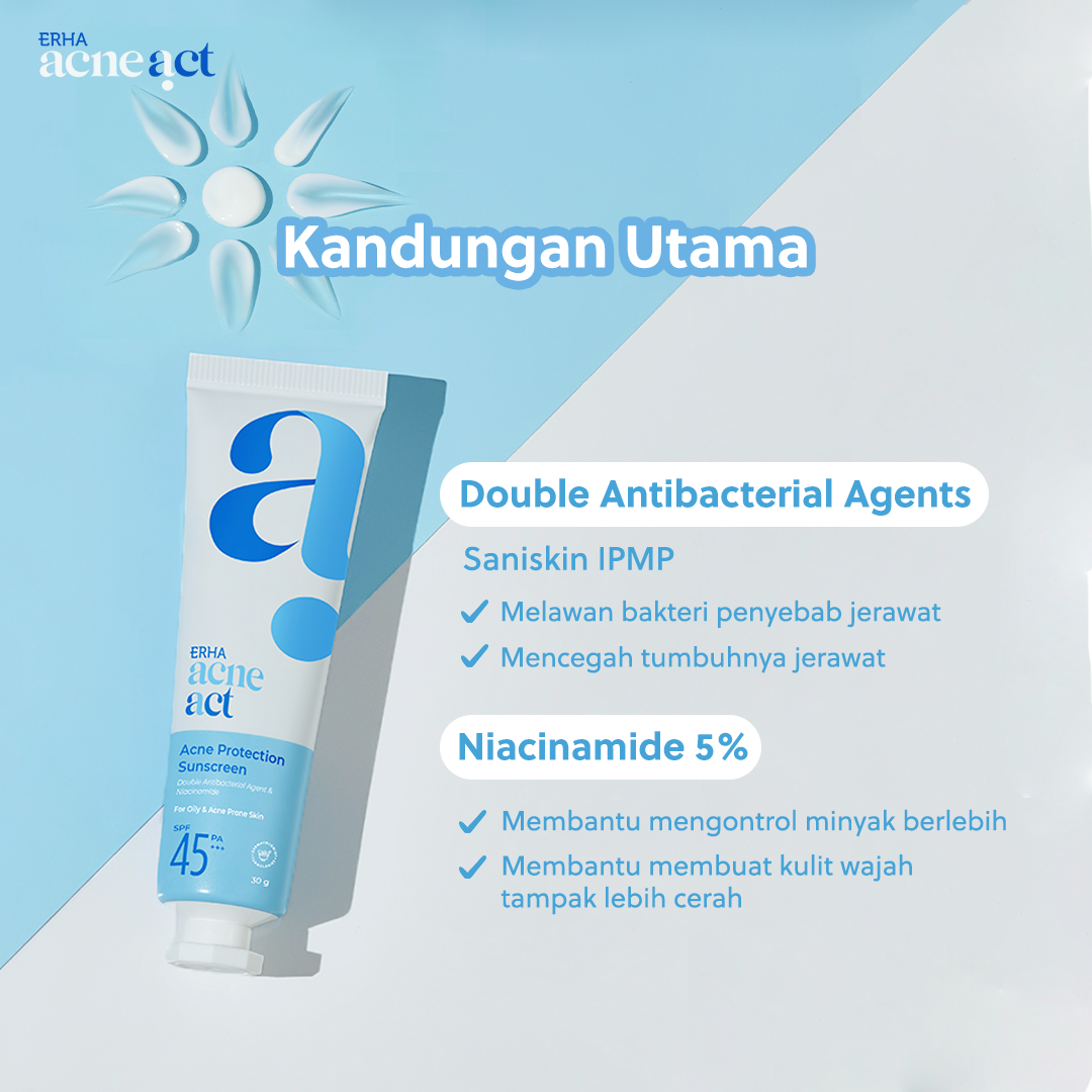 ERHA AcneAct Acne Protection Sunscreen SPF 45 PA+++ 30 g – Sunscreen Wajah Berjerawat